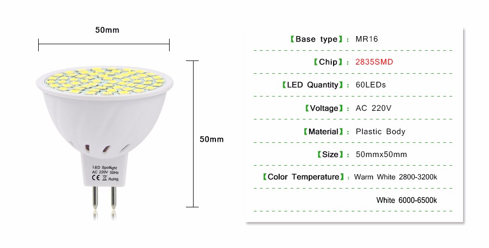Glass / Plastic Spot light MR16 GU5.3 LED Bulb 220V LED Lamp Spotlight 60LEDs 27LEDs 80 LEDs 2835 5730 SMD Grow Plant Light