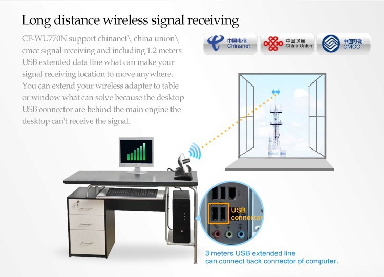 150Mbps high power usb radar antenna wifi adapter wireless signal receiver/emitter Comfast CF-WU770N
