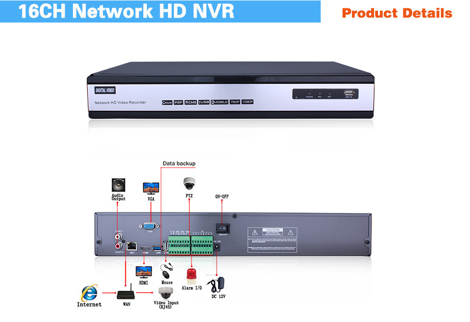 8CH Mini NVR IP Camera Recorder Surveillance 1080P/960P/720P HD Cloud P2P ONVIF HDMI E-SATA HDD Connection 2 USB Black