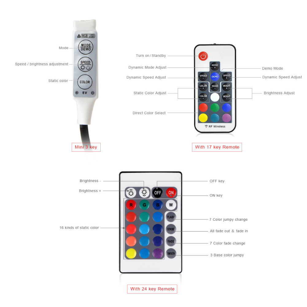 DC 5V warm white / RGB USB LED strip light 1m 2m 3m 4m 5m 30LEDs/m 24key IR / 17key RF RGB remote control Backlight / Bias light