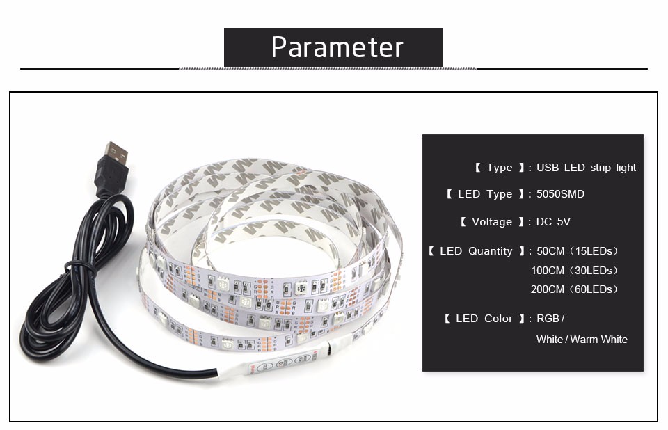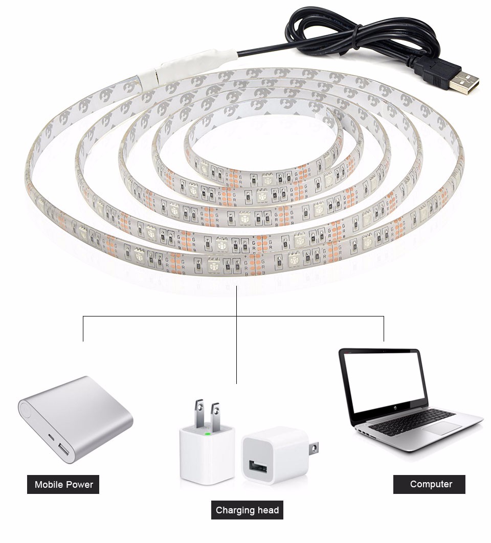 IP20 USB power supply USB LED strip light 3528 5050 SMD 5V 1M 2M 3M 4M 5M USB cable charger LED lamp For TV Background Lighting