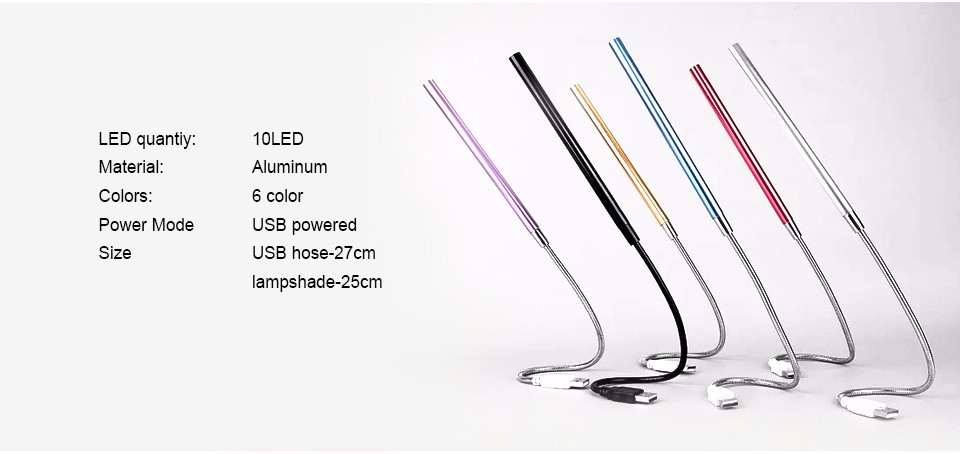 1Pcs 2016 New Metal Material USB LED Book light 10 LEDs flexible 6 colors lamp for Notebook Laptop PC Computer reading Bulb