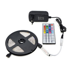 Waterproof /Non-Waterproof 2835 3528 SMD RGB LED Strip light tape String DC12V 5M 44Key Remoter 3A Power Supply Holiday lighting