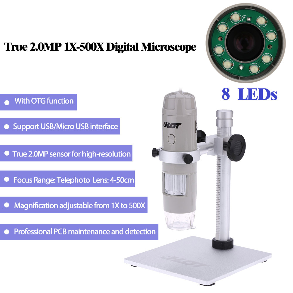 1X-500X USB Microscope OTG Function 8LED Magnification Digital Zoom Magnifier with Holder True 2.0MP Video Camera 4-50cm Focus