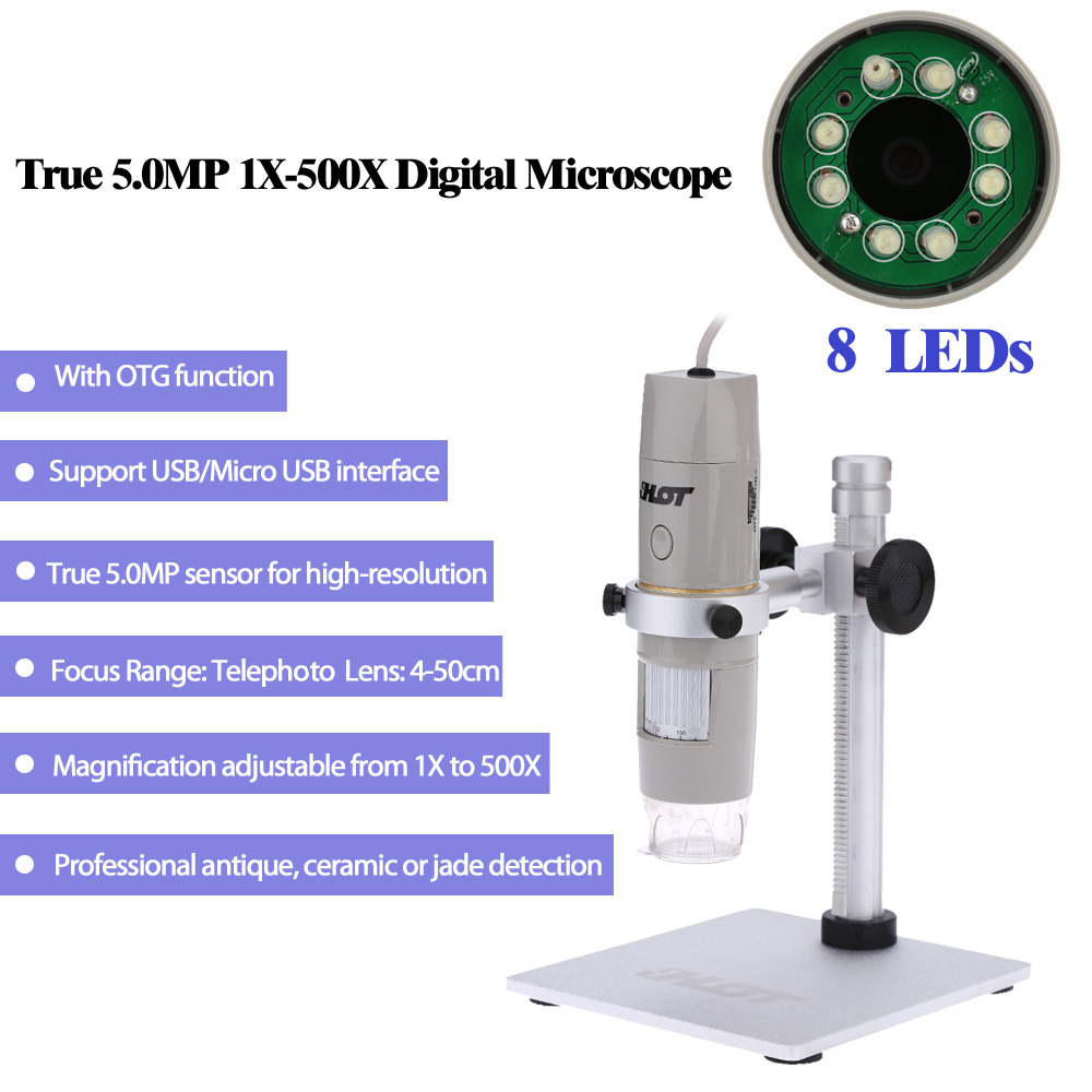 1X-500X USB Microscope OTG Function True 5.0MP Video Camera 8LED Magnification Digital Zoom Magnifier with Holder 4-50cm Focus