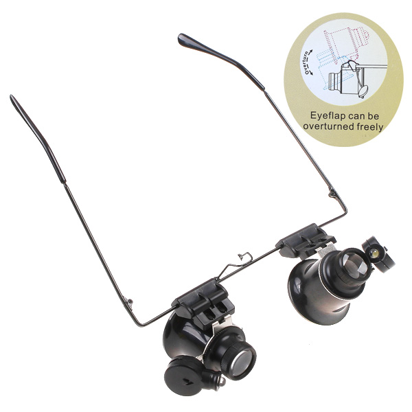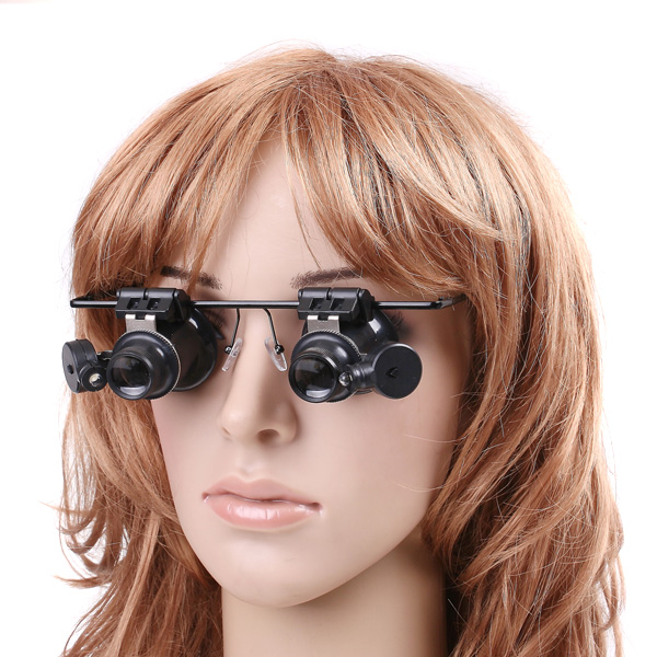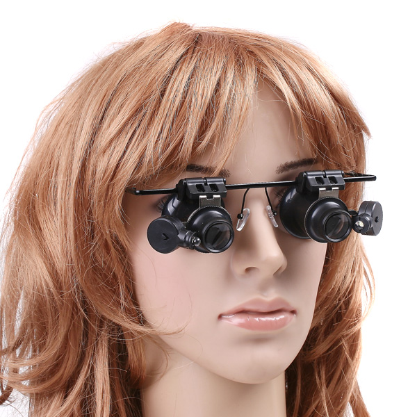 - 20X LED Double Eye Repair Magnifier Glasses Mini Loupe Lens Magnifying Glas with Light Watch Microscope Measurement Tools