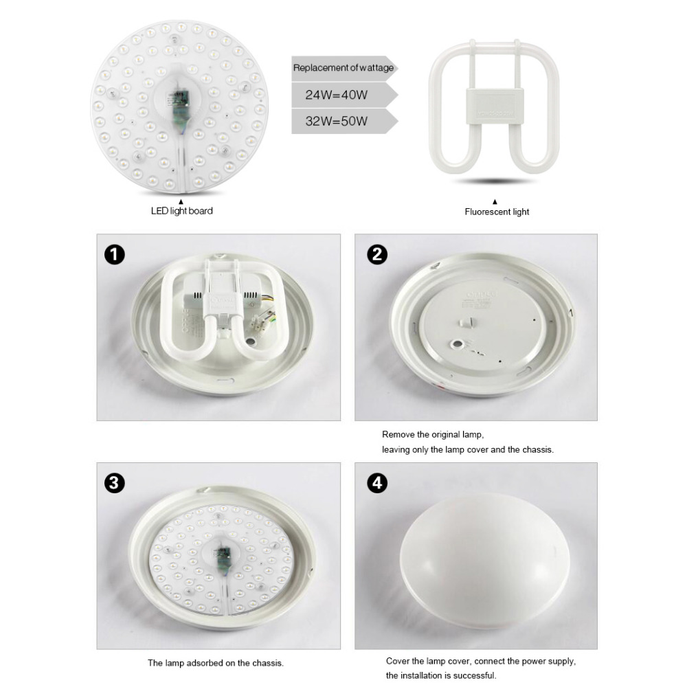 Switch dimming LED Ceiling Downlight LED Module 24W 32W 220V LED lamp Source Plate Replace 40W 50W CFL Fluorescent Tube Bulb