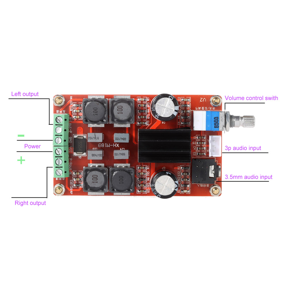 - 2*50W Dual channel Digital Power Amplifier Board Class Dual Channel Audio Stereo AMPD DC12V 24V