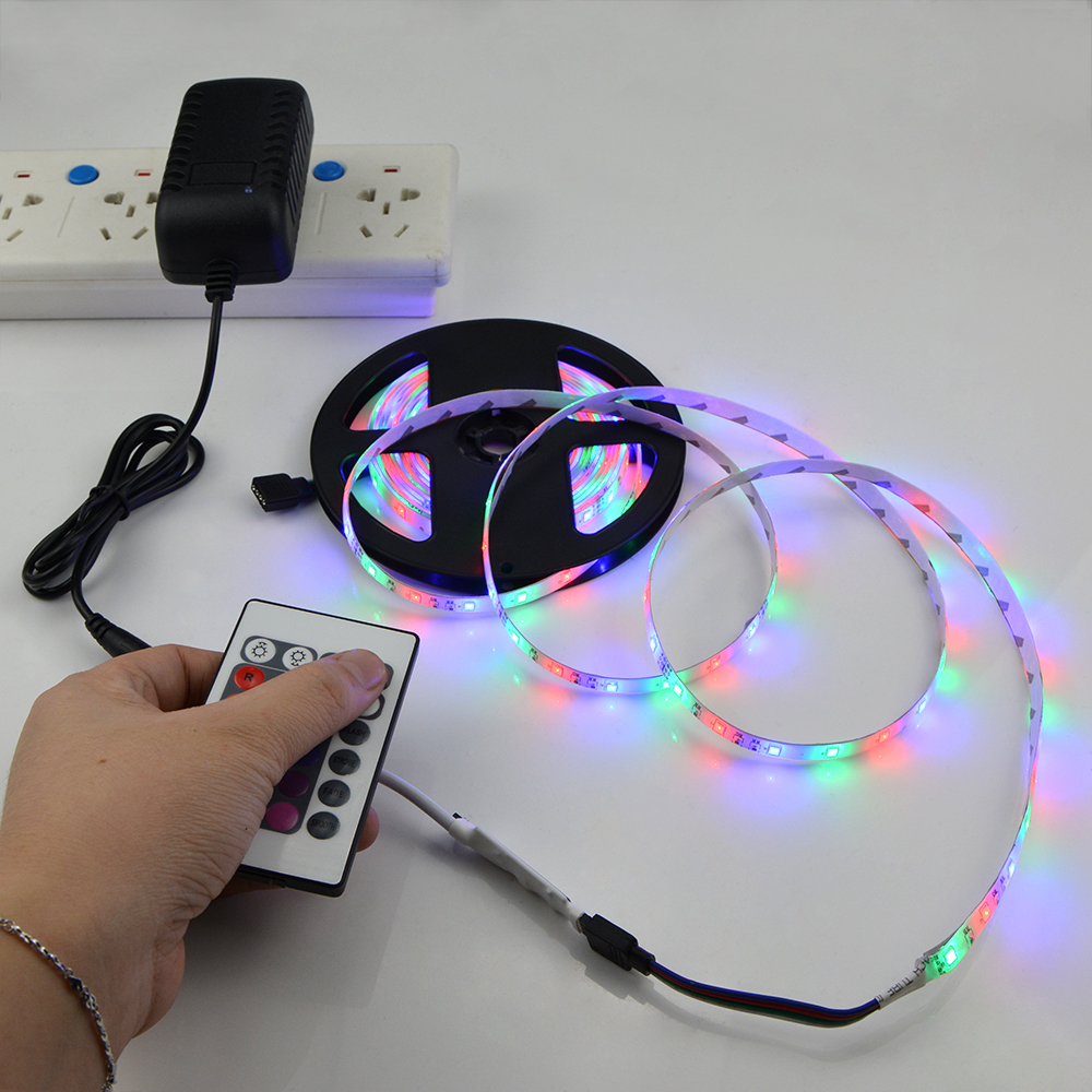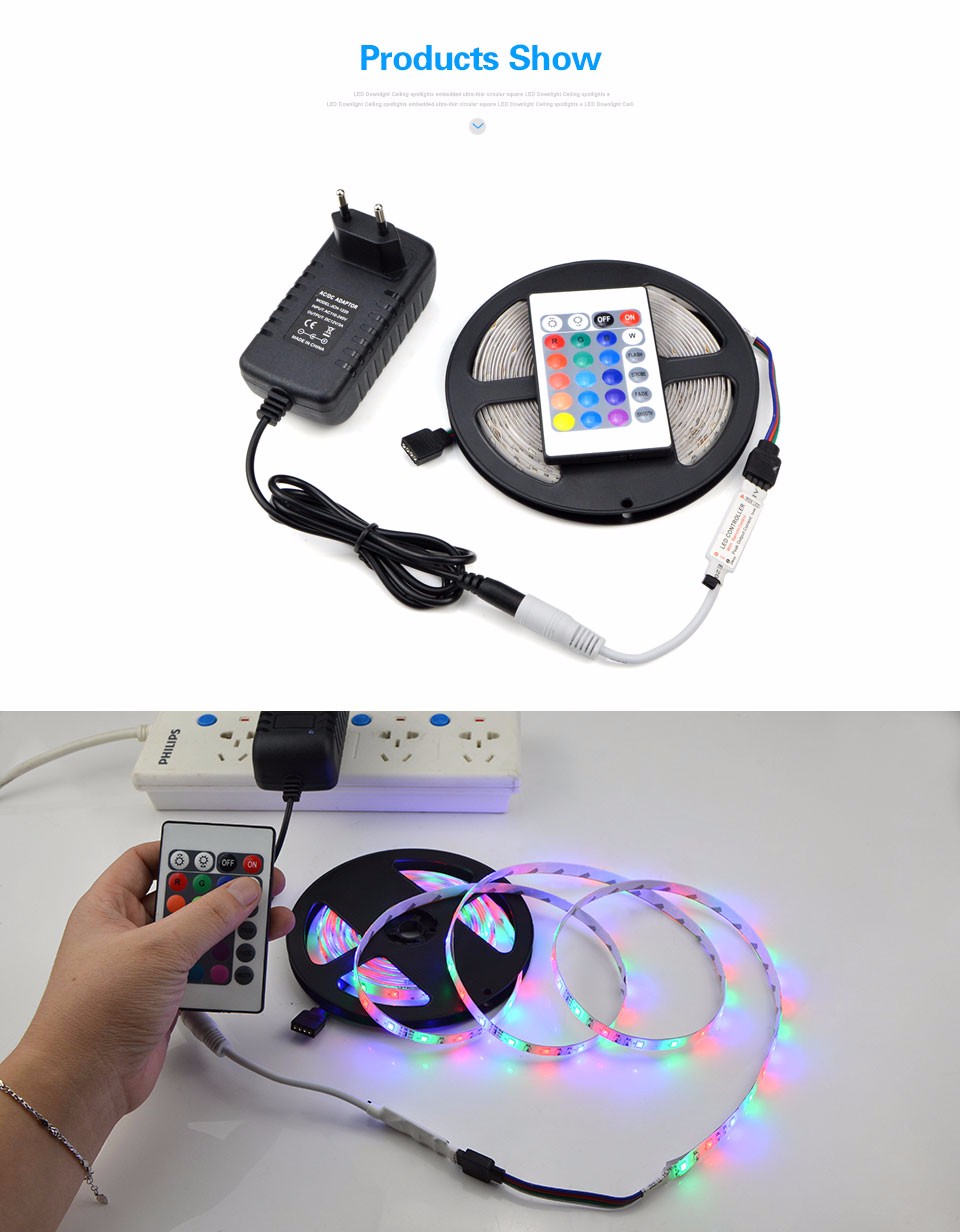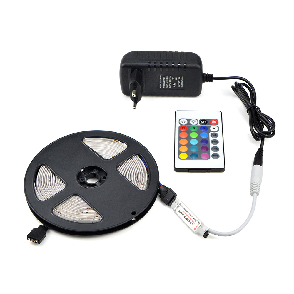 1set Not waterproof DC 12V 5M 2835 SMD RGB LED Strip light + 3A Power Supply adapter + 24key Remote Control Holiday light Lamps