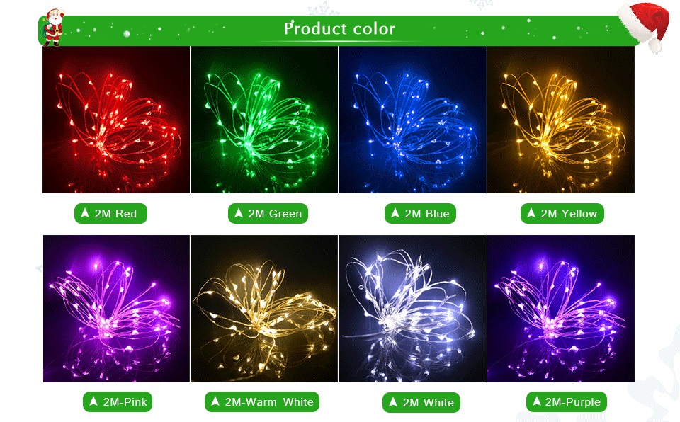 2M LED String lighting Waterproof Holiday light RGB LED Strip light For Fairy Christmas Tree Wedding Party Decoration light lamp