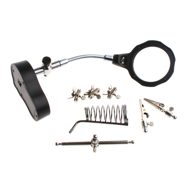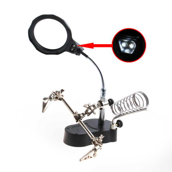 - 3.5X 12X Foldable Auxiliary Magnifier Helping Hand Magnifying Glass with LED Welded Holder Adjustable Crocodile Holding Clamps