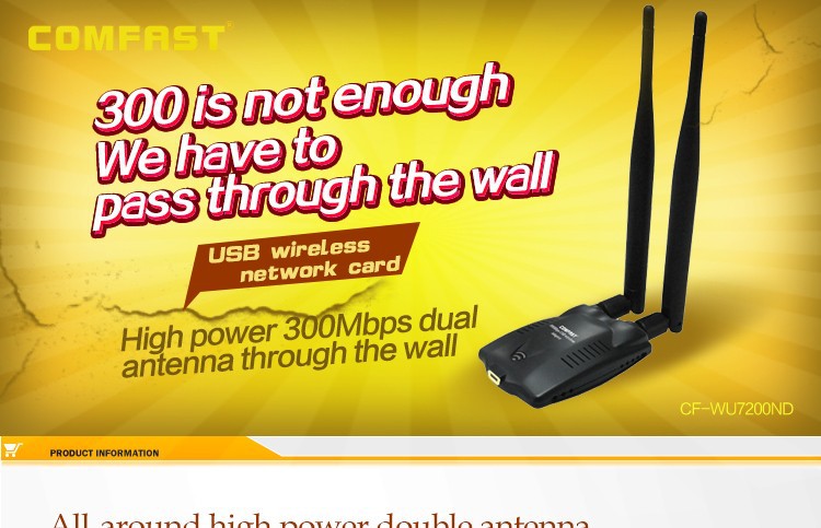 - 300Mbps Double high gain 6dBi external antenna wifi adapter wireless signal receiver/emitter Comfast CF-WU7200ND
