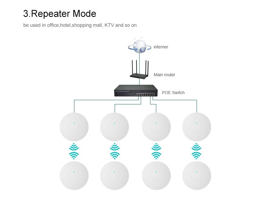 300Mbps Thinnest Water Drop design high power poe ceiling ap wall mounted ap for hotel & enterprise COMFAST CF-E335N