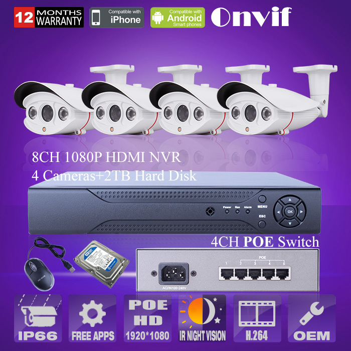 - 4PCS Mermaid style 2.0MP 1080P IP POE camera outdoor P2P Onvif H.264 8CH NVR With 4CH POE Switch security network Camera System