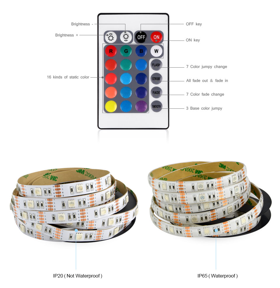 DC 5V 5050 SMD 1m 2m RGB USB cable Led Strip light Ribbon String lighting tape 3key / 24key IR / RF RGB remote control