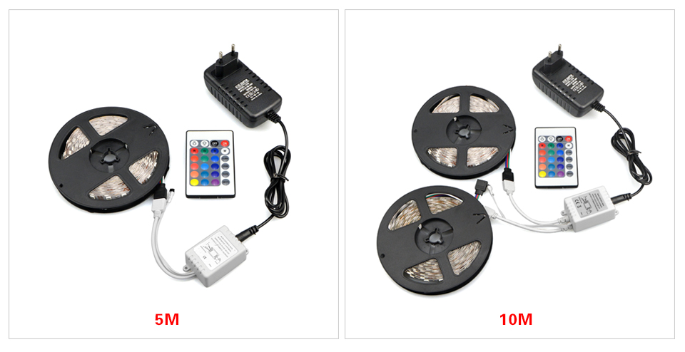5M 10M 60LEDs/m RGB LED Strip light IP20 / IP65 waterproof DC 12V 3528 SMD / 5050 SMD LED lamp Tape 3A Adapter Remote controller