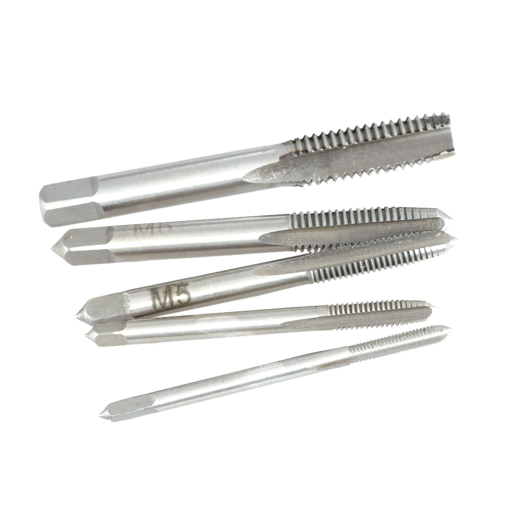 - 5pcs/set Straight Groove Tap Bearing Steel Mini Straight Flute Hand Taps Drilling Machine Accessories Round Shank with SquareEnd