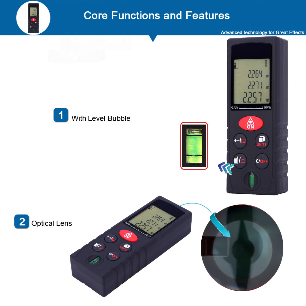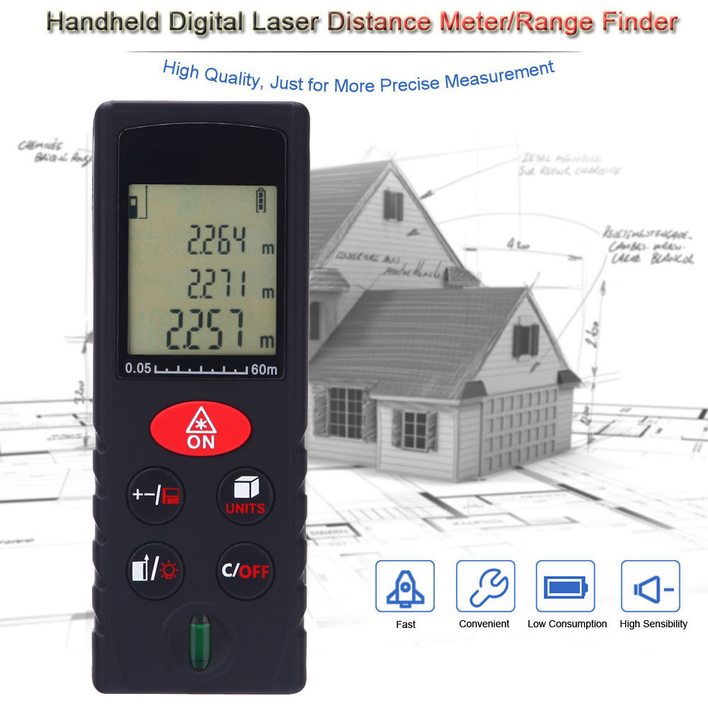 - 60m/197ft Mini Laser Rangefinder Handheld Digital Distance Meter High Precision Range Finder Area Volume Measurer Level Bubble
