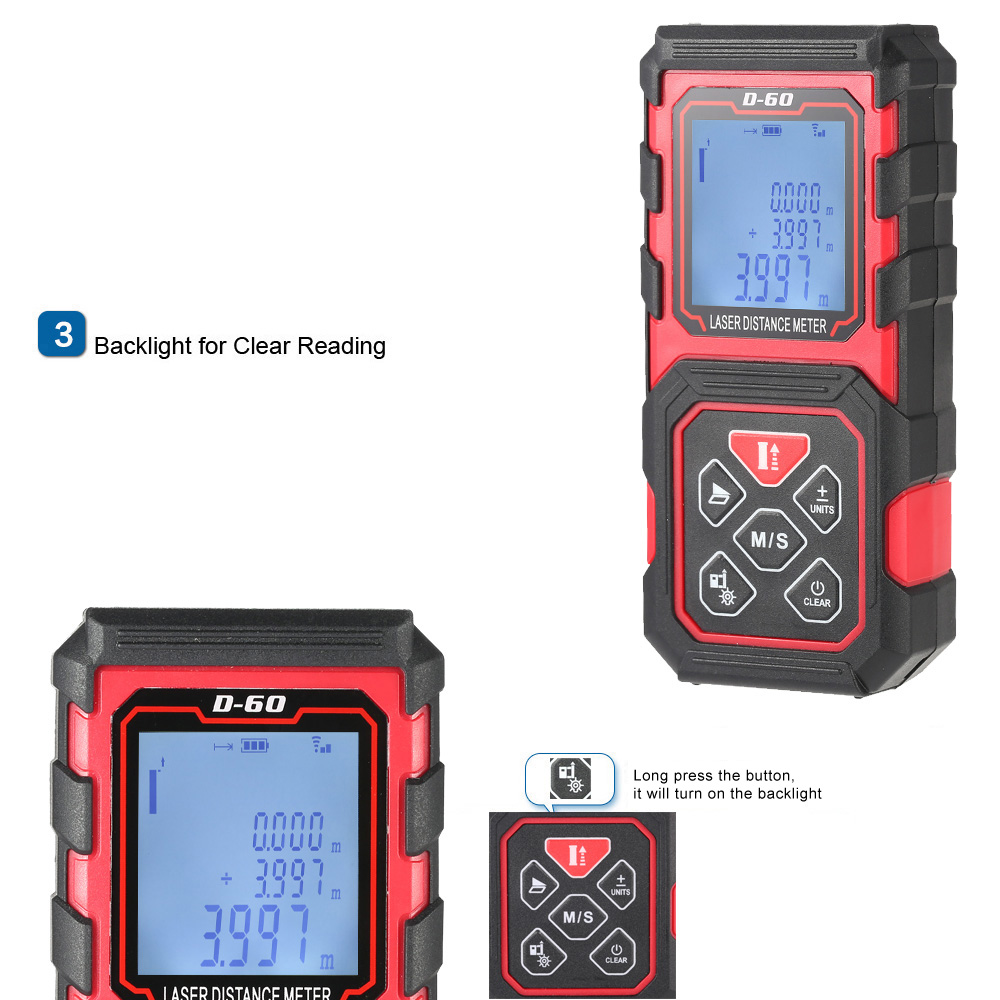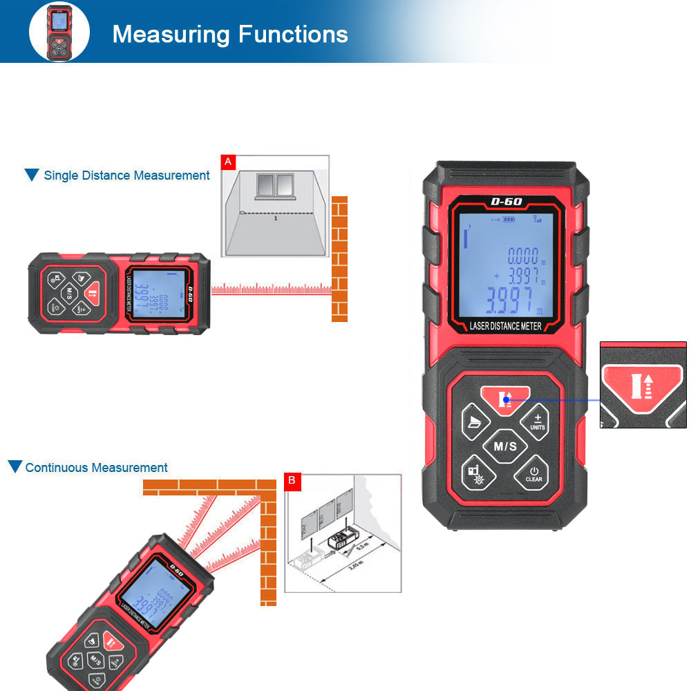 60m/229ft Distance Meter Portable Handheld Digital Laser Distance Meter High Precision Range Finder Area Volume Measurement