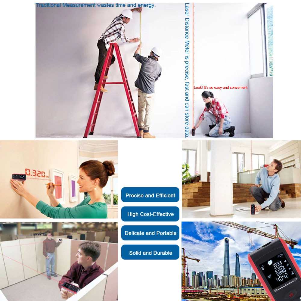 - 60m High precision Laser rangefinder Handheld laser Distance Meter Range Finder Area Volume Measurement with Angle Indication