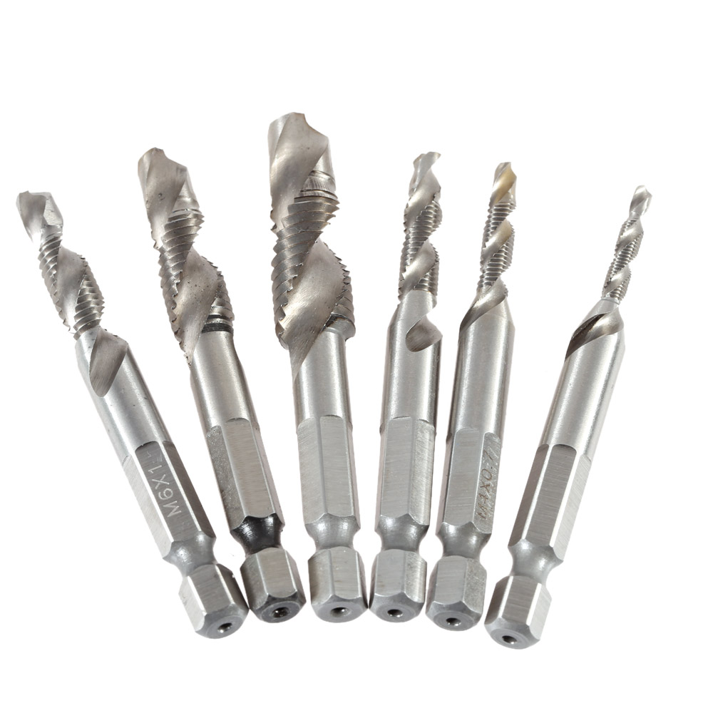 - 6pcs/set Hex Shank Combinate Mini Drill Tap Bit Set HSS Woodworking Tap Drill Metal Plastic milling Cutting Tool Hole Spiral Tap