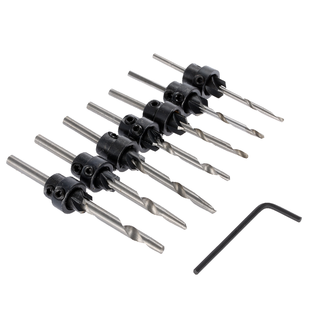 7pcs 5-12# Woodworking Tools dremel drill bit herramientas drill perforator Carpentry Tapered Countersink Drill Bit Set &Hex Key