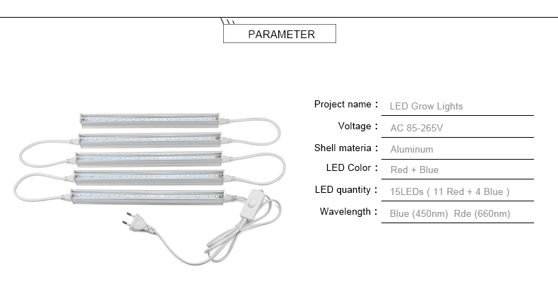 - 85-265V 110V 220V 25W LED grow light 11 Red : 4 Blue led lamp with EU plug LED bar light for plant Garden Hydroponics Greenhouse