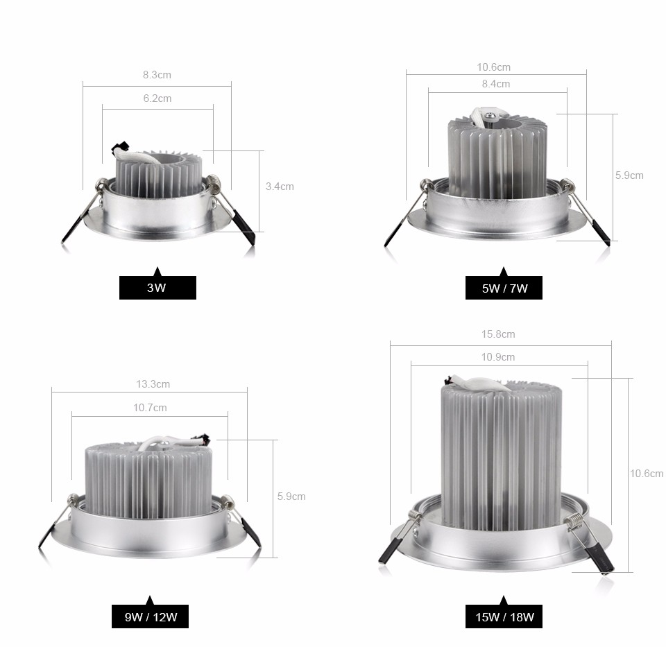 LED Downlight 85-265V 3W 5W 7W 9W 12W 15W 18W LED Recessed Spot light Bulb Ceiling down Light Panel Lamp with Driver Lighting