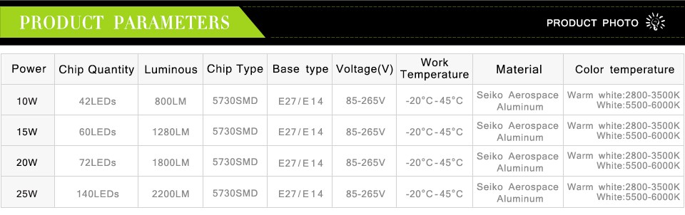 New Arrival 5730 SMD Aluminum PCB 85-265V 110V 220V E27 E14 42LEDs Real high power 10W LED corn bulb light Energy Saving Lamp