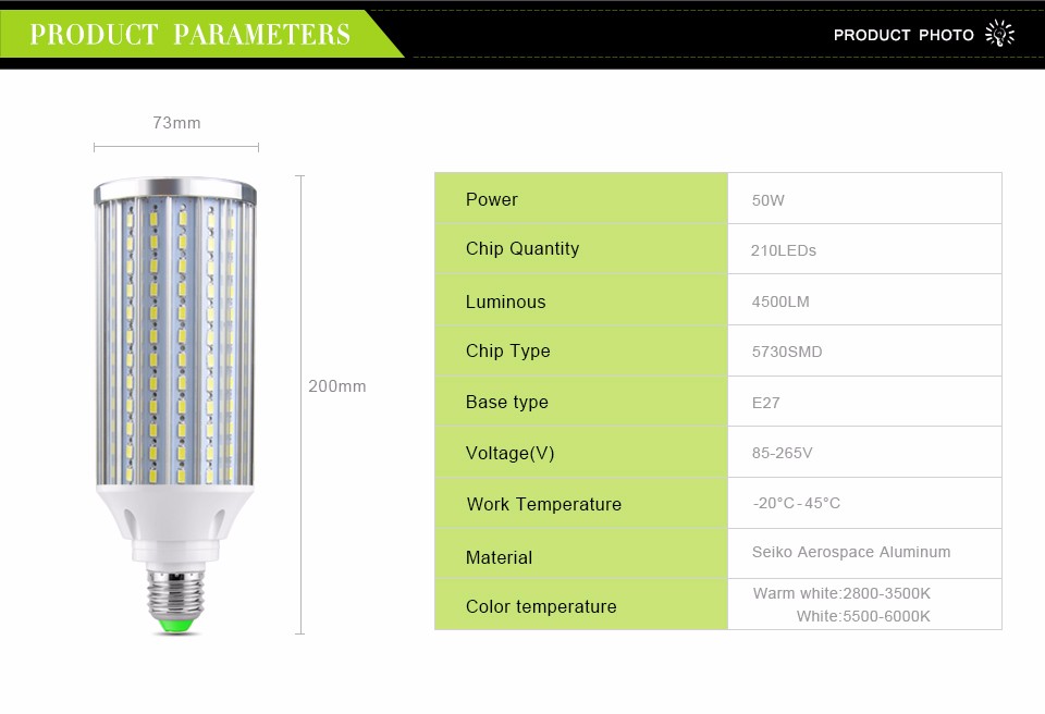 85-265V E27 10W 15W 20W 25W 30W 50W High Power Aluminum PCB Cooling 5730 SMD lampara LED Corn Bulb No Flicker LED lamp Spotlight
