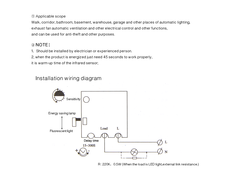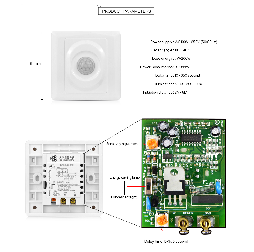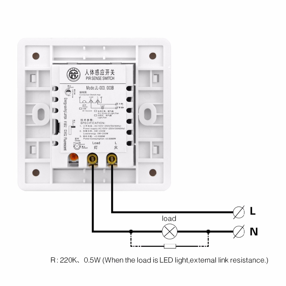 - AC 100-250V Infrared Induction PIR Motion Sensor Switch Time Delay Adjustable Mode Detector Wall Module Adapter For LED lamp Fan