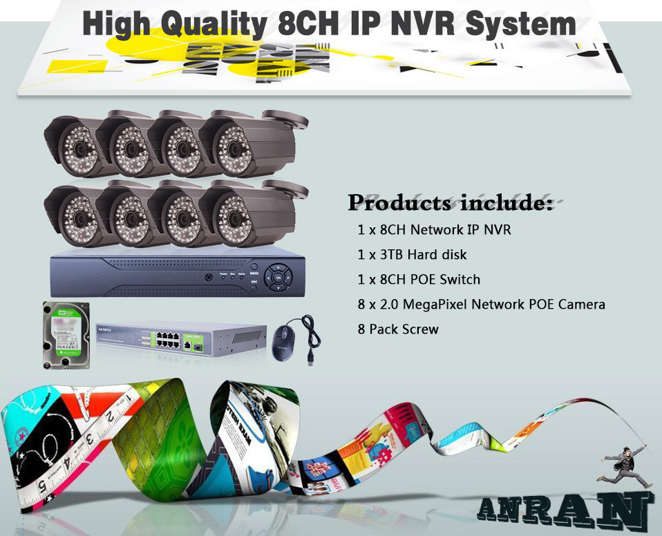 - Anran Security Video Surveillance 8CH NVR System POE Switch Megapixel 1080p POE Camera IP Onvif outdoor night vision CCTV Kit