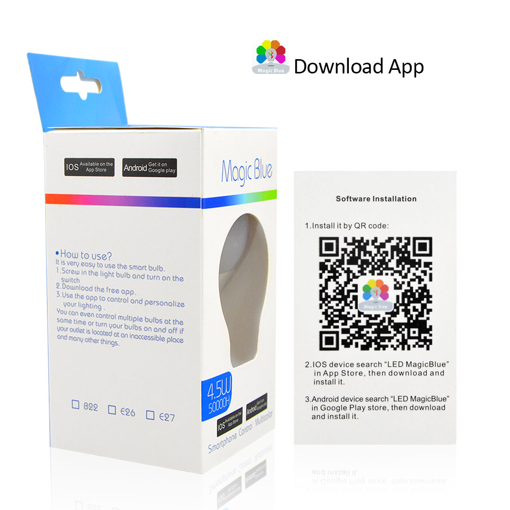 Bluetooth Smart LED RGBW lamp 85V-265V E27 4.5W APP Control Magic Bulb light Suit for IOS / Android Smartphone