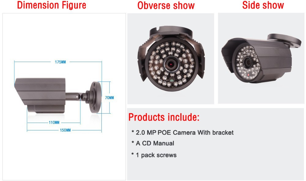- Build-in POE module Network camera waterproof H.264 Megapixel HD Onvif Infrared Night Vision Security CCTV video Network Camera