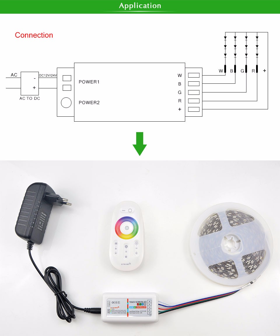 DC 12- 24V RGBW RGBWW Led Controller 2.4G RF Touch Screen Remote Control 6A 4 Channel way for smd5050 3528 5630 led strip Light