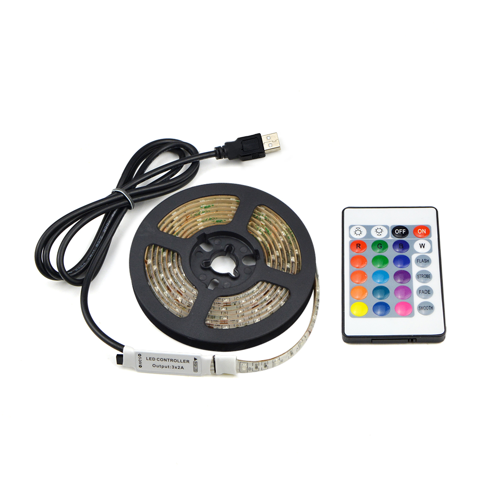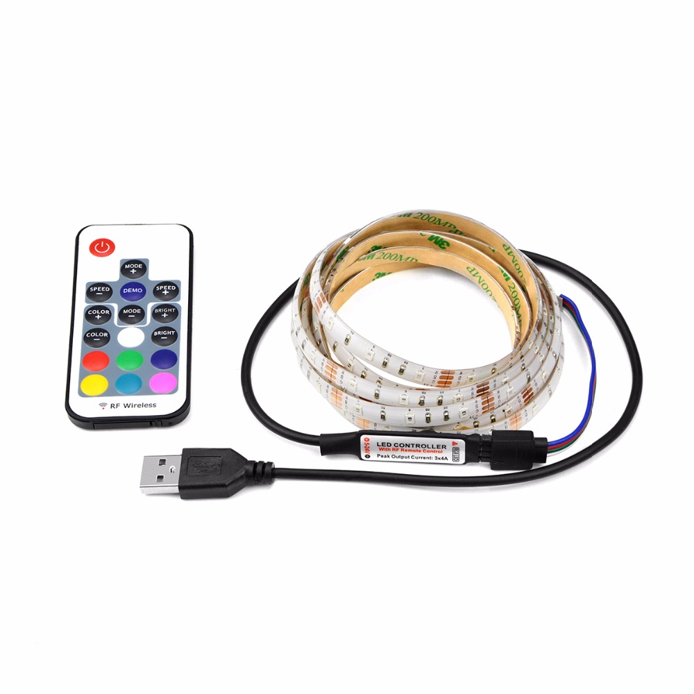 DC 5V 3528 SMD USB charger RGB led strip light IR RF remote control 1M 2M 3M 4M 5M USB cable LED tape power supply LED lamp