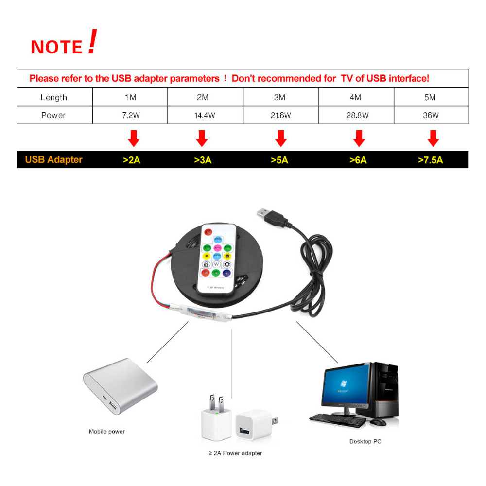 5050 SMD USB Charger Supply RGB LED Strip light DC 5V 0.5m 1M 2M USB Cable Decor lamp String / RGB controller RGB remote control