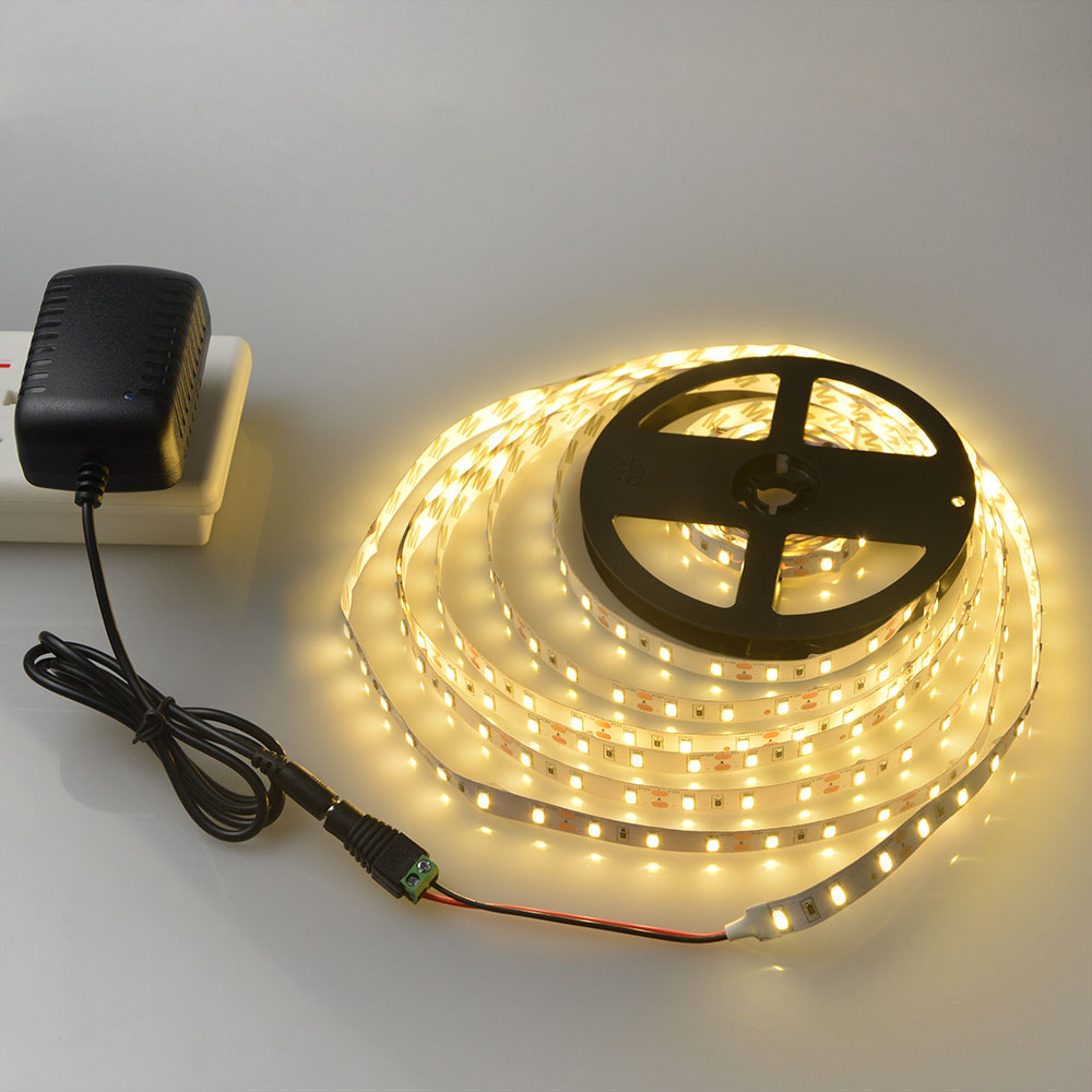DC12V 5m 5630 SMD LED Strip light IP20 no waterproof Indoor Decorative lamp Flexible tape Lighting with 3A Power Supply adapter