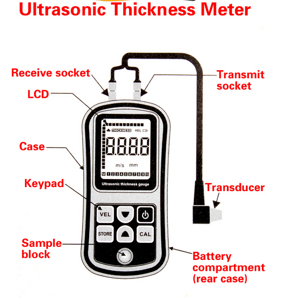 Digital calibre Ultrasonic Thickness Gauge Tester paint-coating-thickness-gauge Depth Gauge + Sound Velocity Meter 1.2~225mm