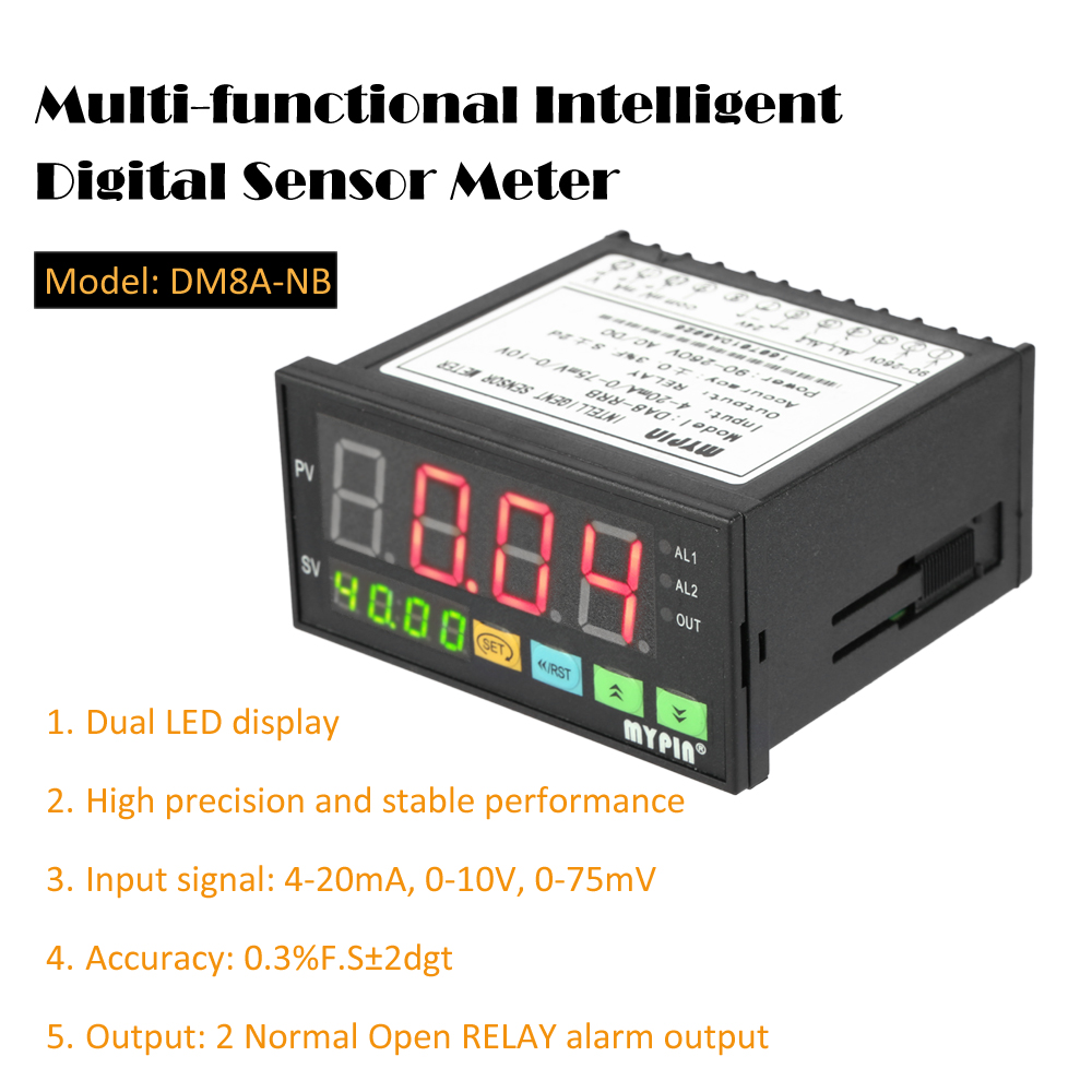 - Digital Sensor Meter Multi-functional Intelligent Pressure Transmitters LED Display 0-75mV/4-20mA/0-10V 2 Relay Alarm Output