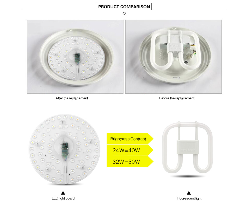 Switch dimming LED Ceiling Downlight LED Module 24W 32W 220V LED lamp Source Plate Replace 40W 50W CFL Fluorescent Tube Bulb