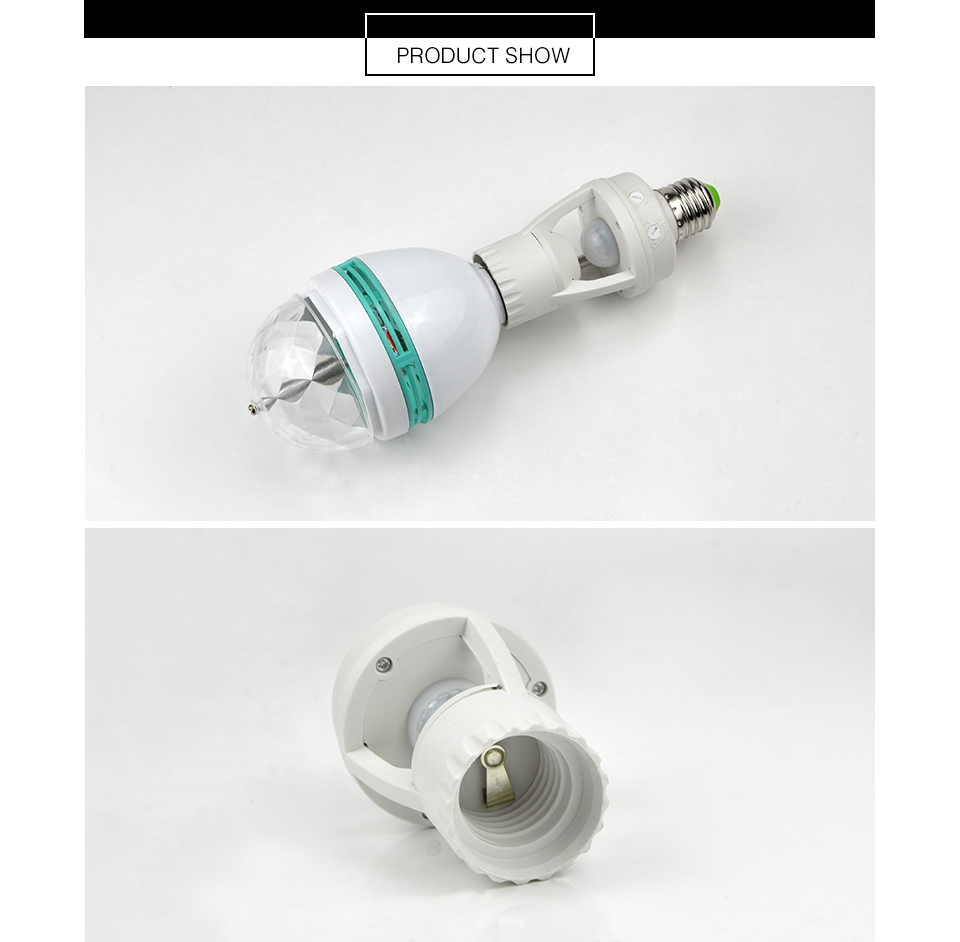 E27 3W 220V 110V PIR Motion Sensor RGB LED night light lamp Stage party Bulb / Infrared Induction PIR Switch lamp base Holder
