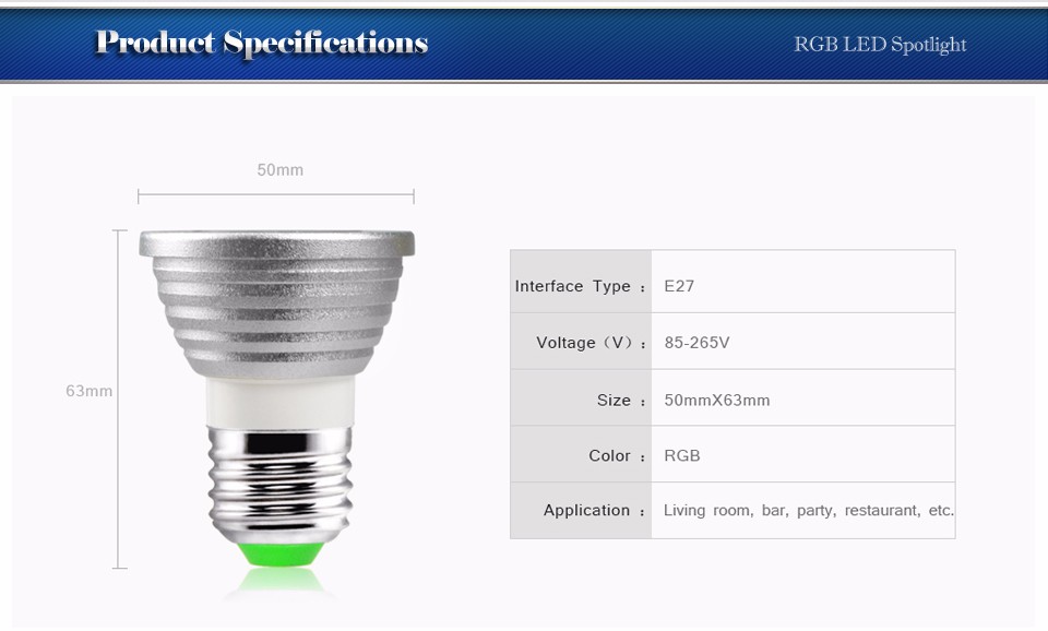 - E27 GU10 85-265V 220V 110V RGB LED Bulb LED light LED lamp Dimmable 24Key Remote Control Night light Spotlight Home Decoration