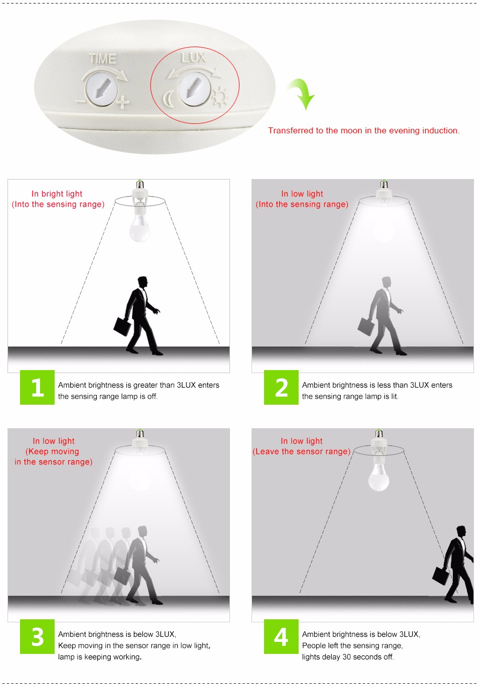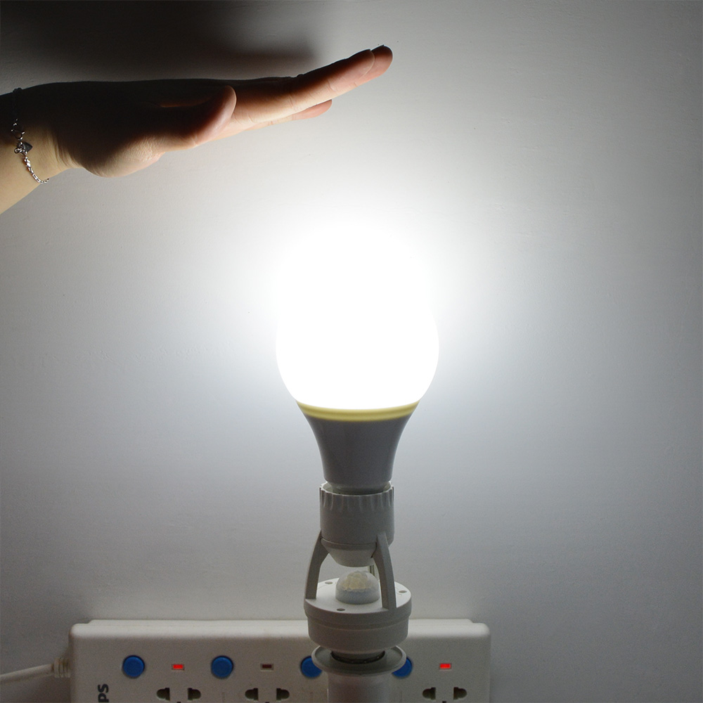 E27 Plug Socket Switch Base PIR Infrared Motion Sensor LED lamp Base Holder E27 12W 220V LED Bulb light For Stair Hallway light