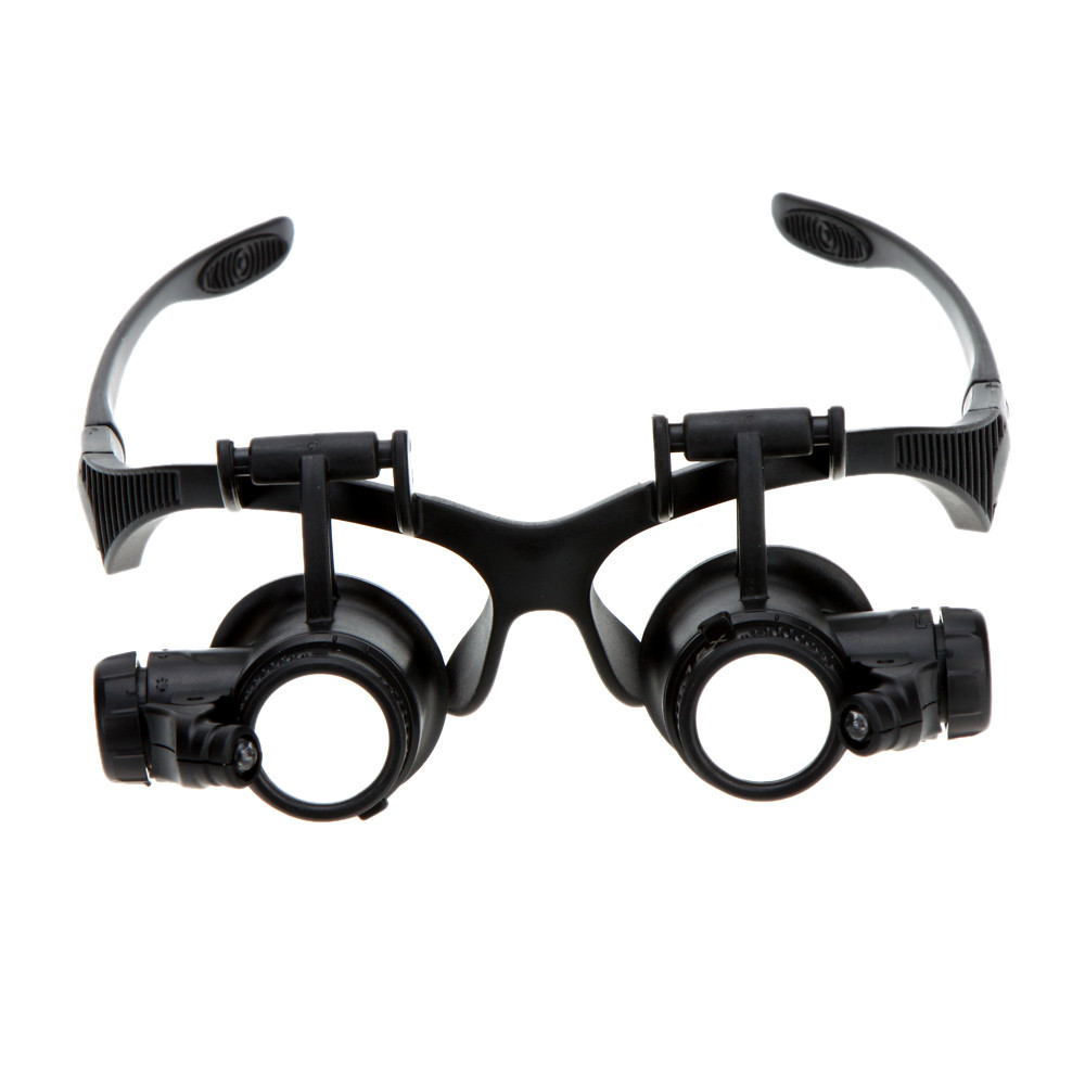 10x 15x 20x 25x Magnifying Glass with 2 LED Light Head Wearing Magnifier Double Eye Jeweler Watch Clock Repair Loupe microscope