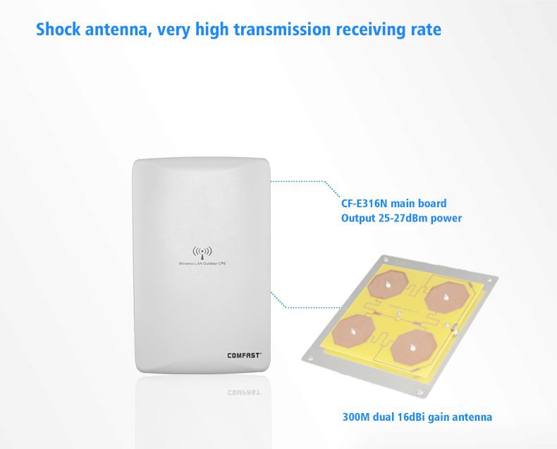 - Free shipping Long Distance Wireless 11b/g/n WLAN CPE Outdoor 16dBi 300Mbps 400mw distance 5KM Comfast CF-E316N