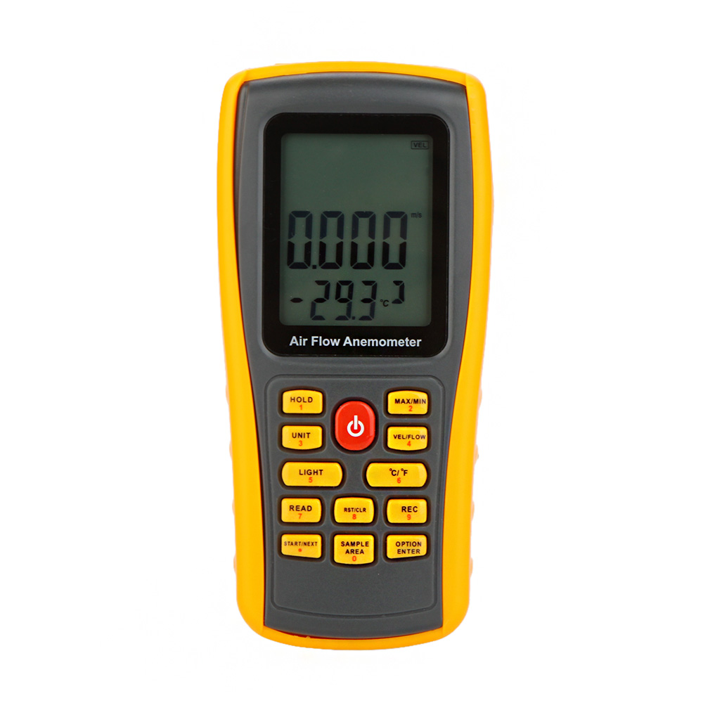 - GM8902 Digital Anemometer tachometer Wind Speed Meter velocity Air Flow Tester Air Temperature Meter 0~45m/s with USB Interface