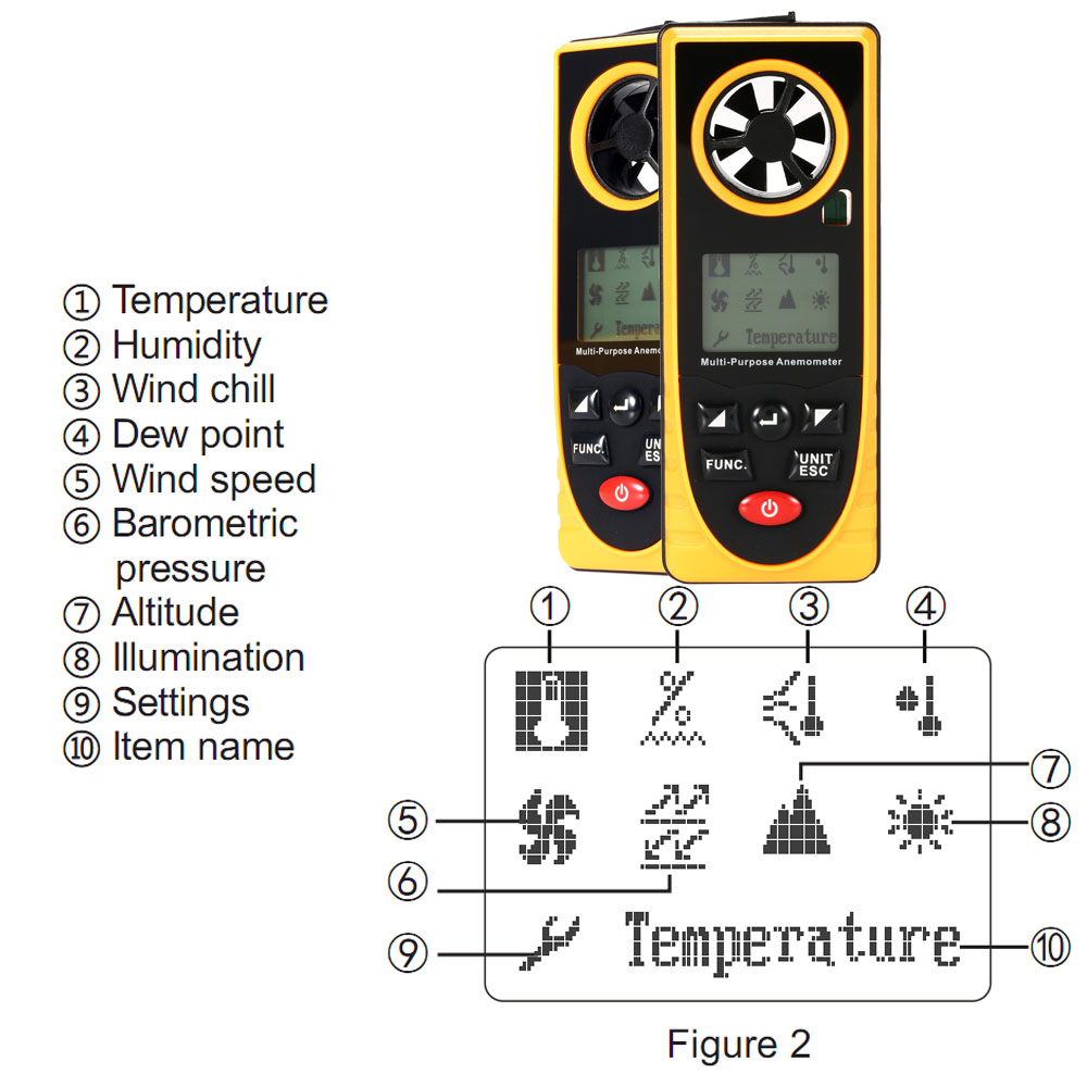 - Great Tachometer Mini Anemometer Wind Speed Temperature Humidity Wind Chill Dew Point Barometric Pressure Illumination Measurer