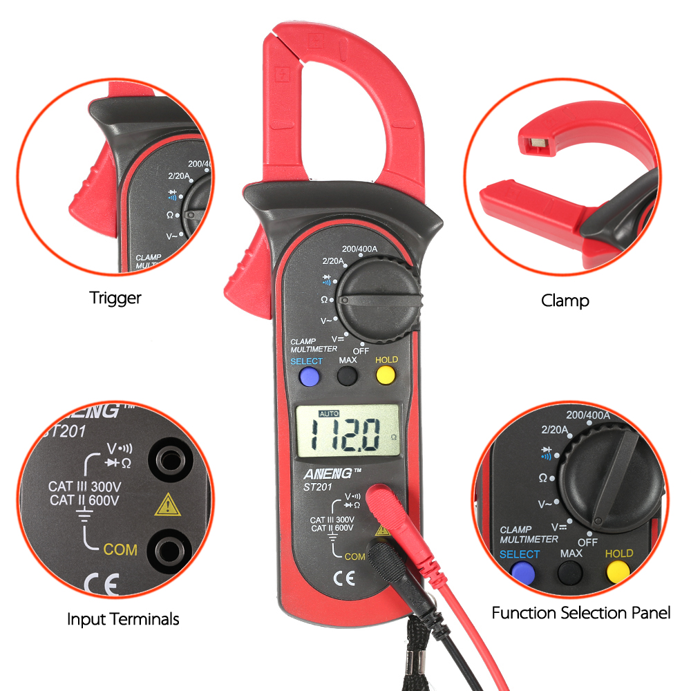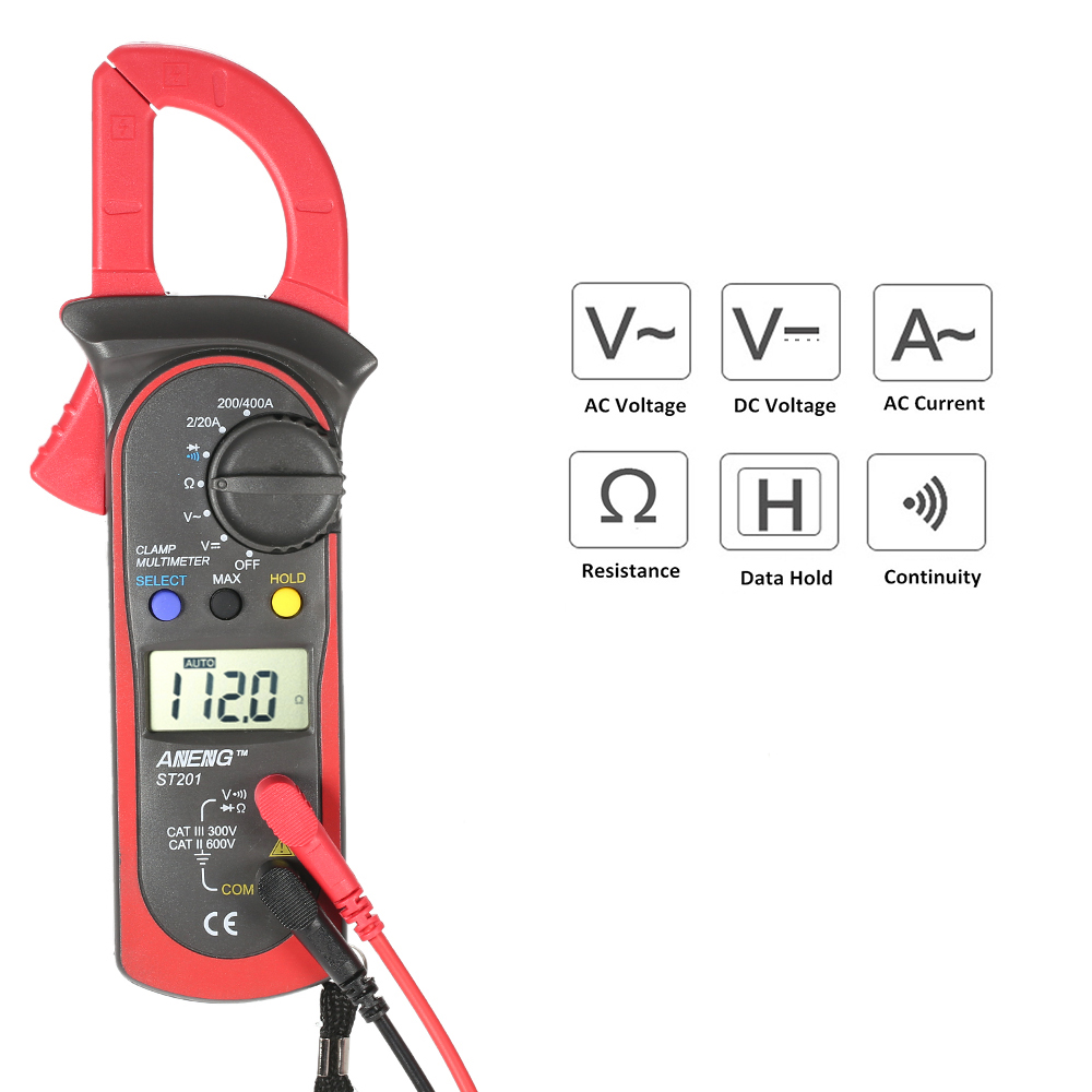 Handheld Digital LCD Display Clamp Meter Multimeter AC/DC Voltage AC Current Resistance Diode Continuity Measuring Data Hold