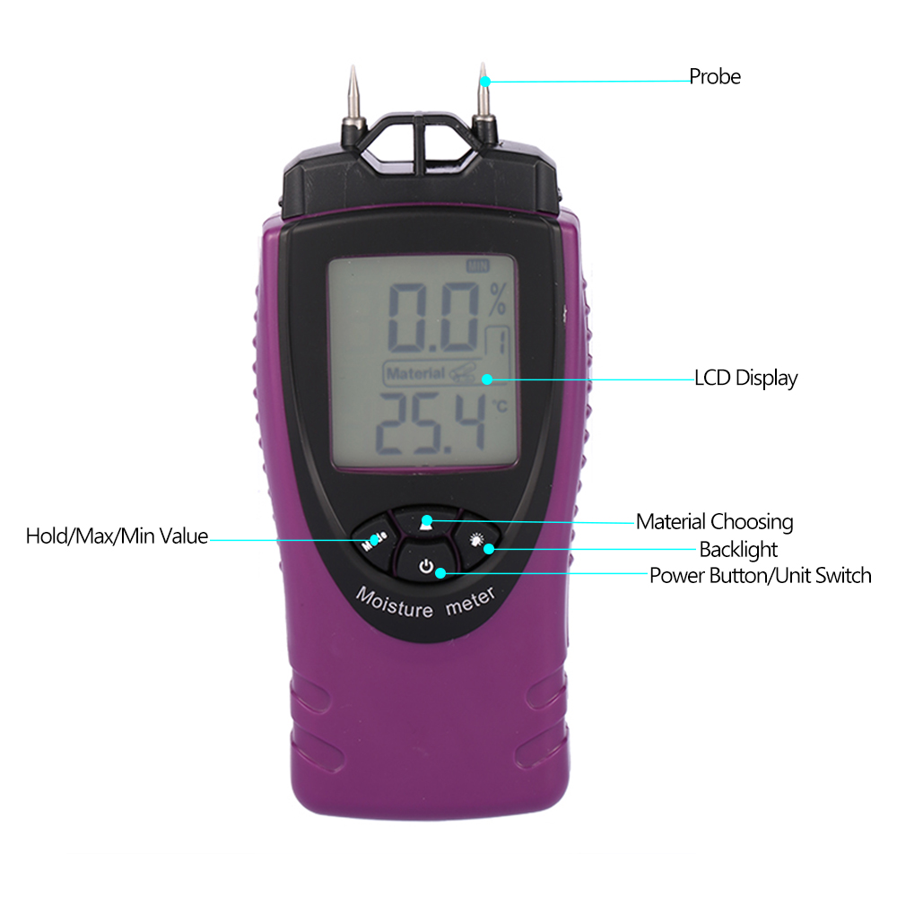 Handheld Digital Moisture Meter tree timber Wood Lumber Humidity Detector Construction Materials humidite Tester 2Pin Probe